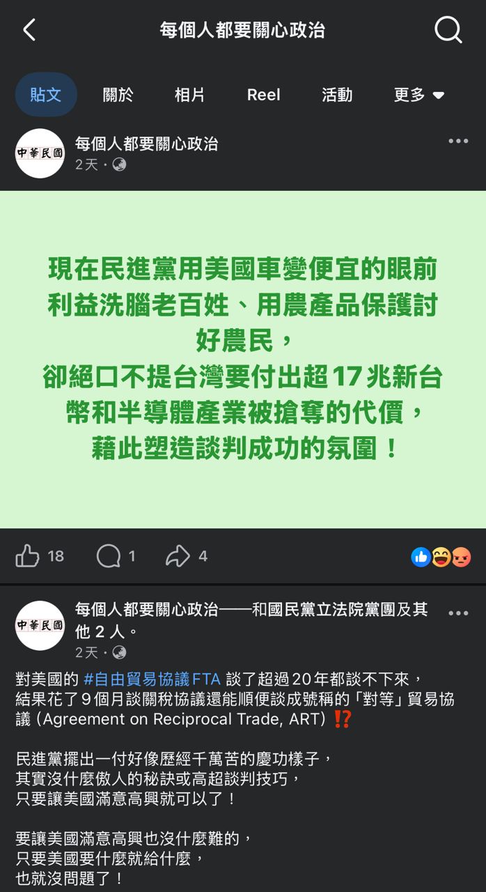 不然就是「民進黨洗腦老百姓美國車會變便宜,卻絕口不提台灣要付出超17兆新台幣和半