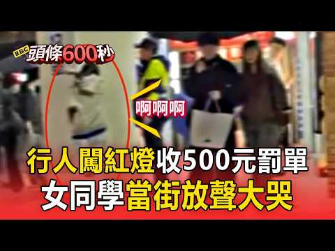闖紅燈遭開罰 女學生當街崩潰