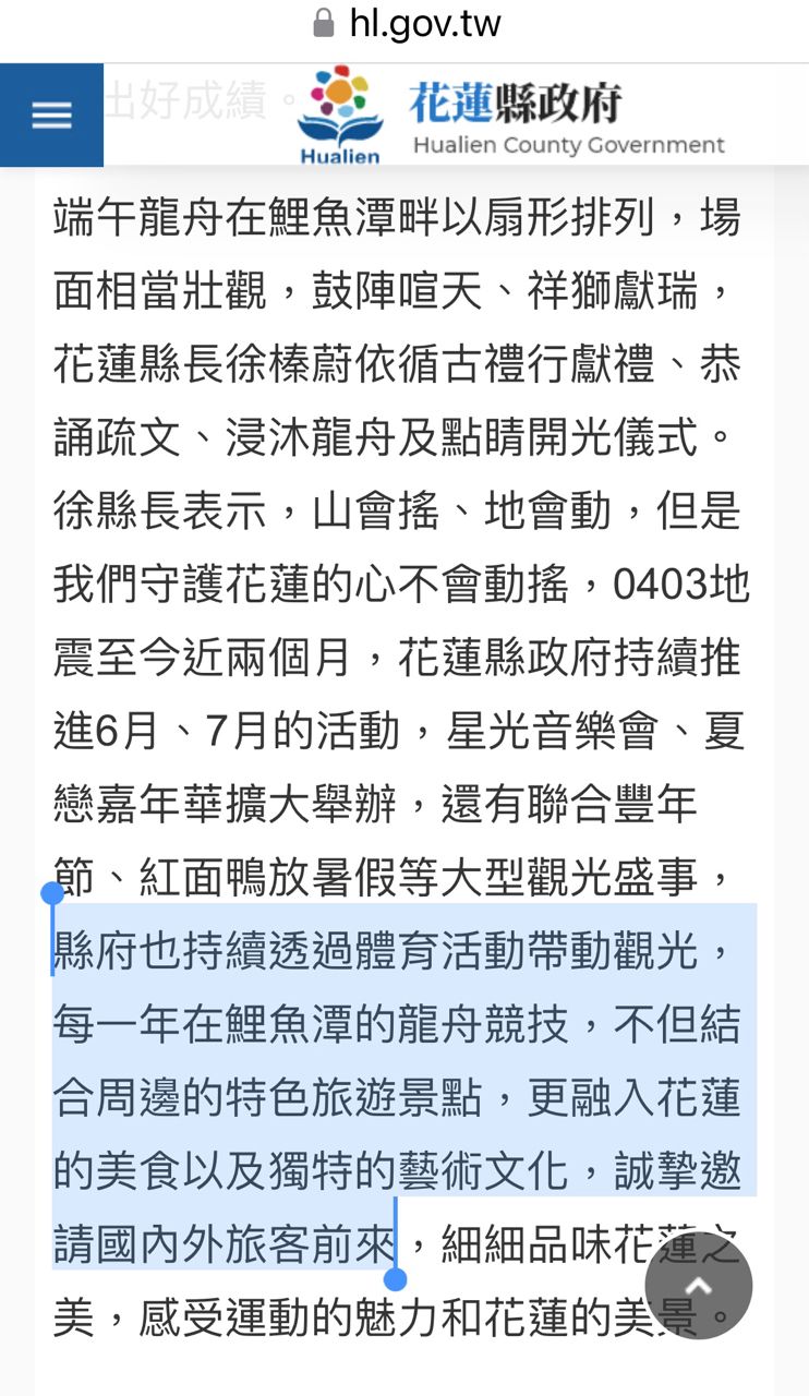 : : 從花蓮縣政府的官網與新聞畫面可以清楚看到,無論是端午龍舟賽、點睛儀式,或是?