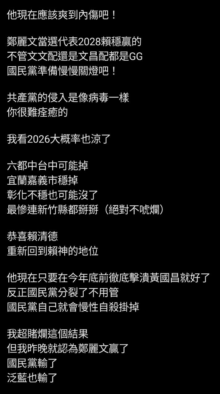 我記得這位大大說過國民黨可能會掉台中,並且輸掉2028