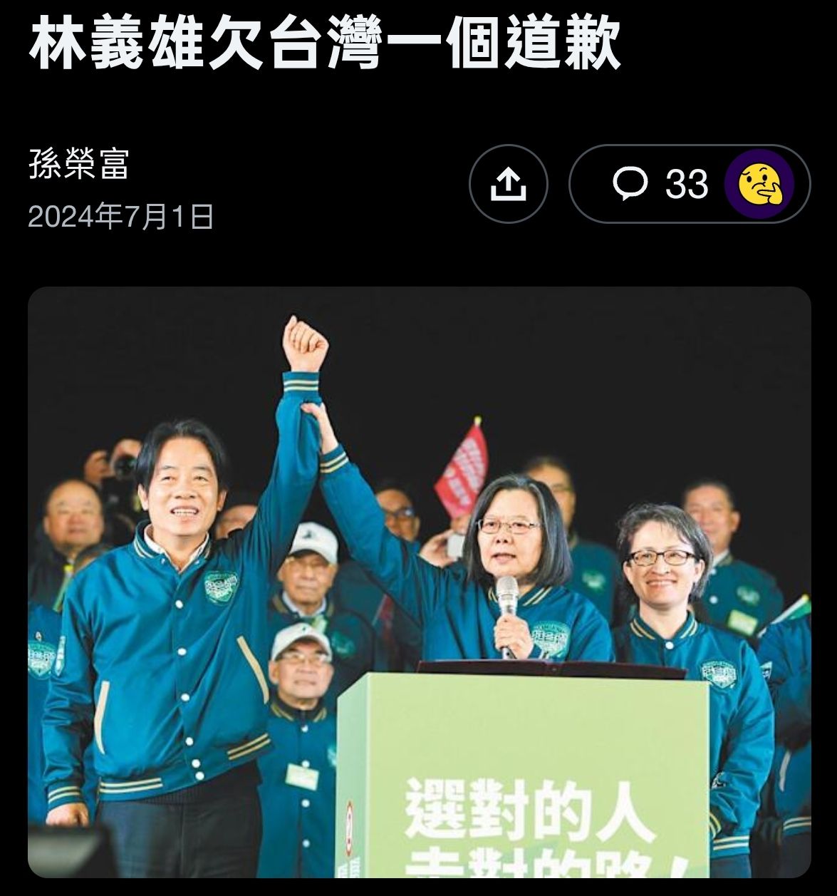 → kload: 蠢鳥應該肉搜林義雄 害他們丟盡了臉32F 123.192.178.85 台灣 02/25 18:45
