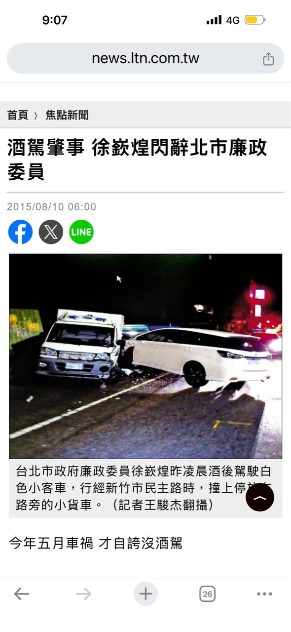 作者 powderzhon (半夜12點的4000M及時向外)標題 [新聞] 點名徐嶔煌曾酒駕選議員沒事 賴苡任:新時間 Thu Feb 26 09:01:20 2026