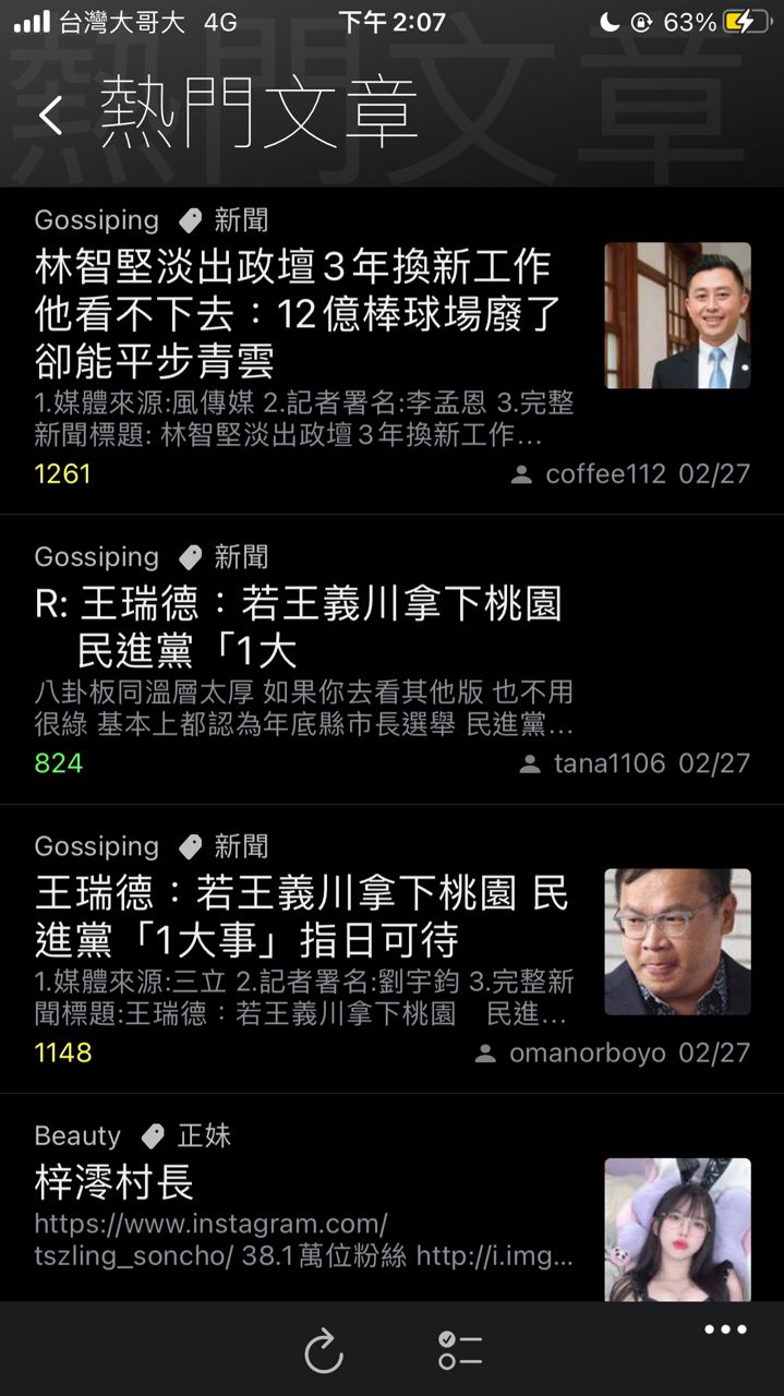 beptt左上三橫槓-設定-熱門文章-開啟動詞熱門打開(之後重啟app就有熱門文章)6F 110.28.49.79 台灣 02/27 14:17