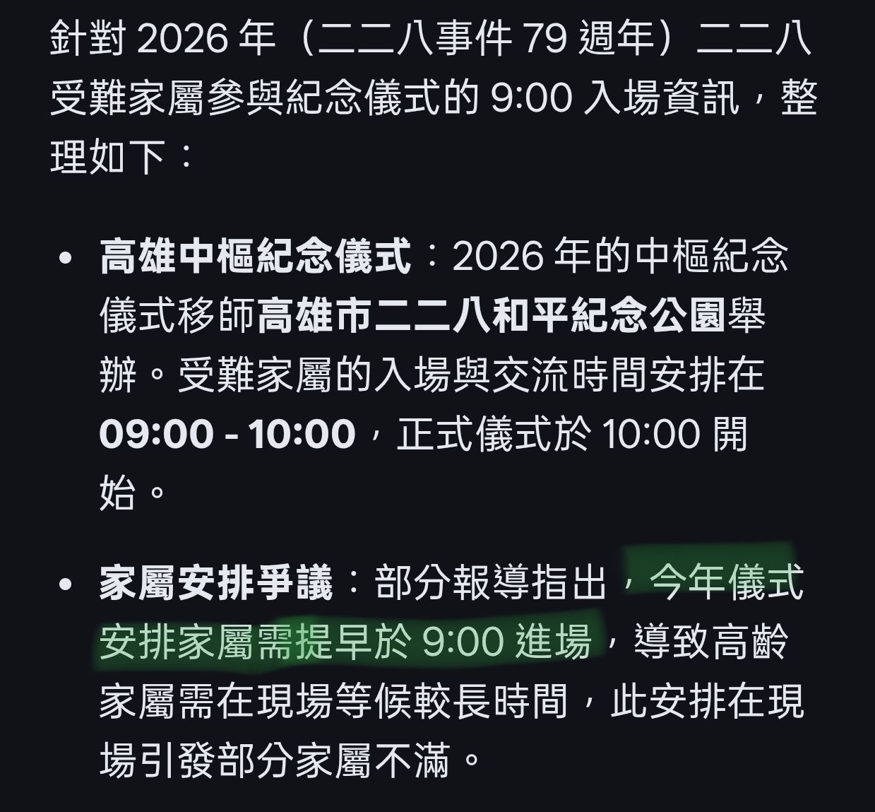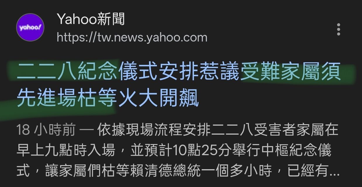 作者 kaminari22tw (拳擊袋鼠能暴漲數十倍的)標題 [討論] 228叫受難家屬提前1.5小時迎駕賴清德?時間 Sun Mar 1 16:21:18 2026