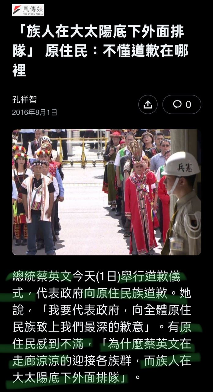 蔡英文向原住民道歉時也是找各族長老來罰站曬太陽