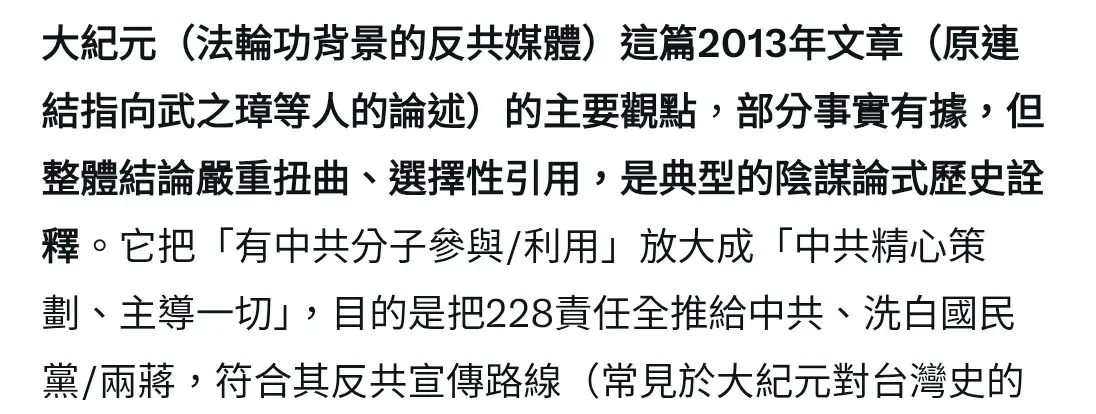 : 淡化共產黨跟皇民對228的影響是錯誤的