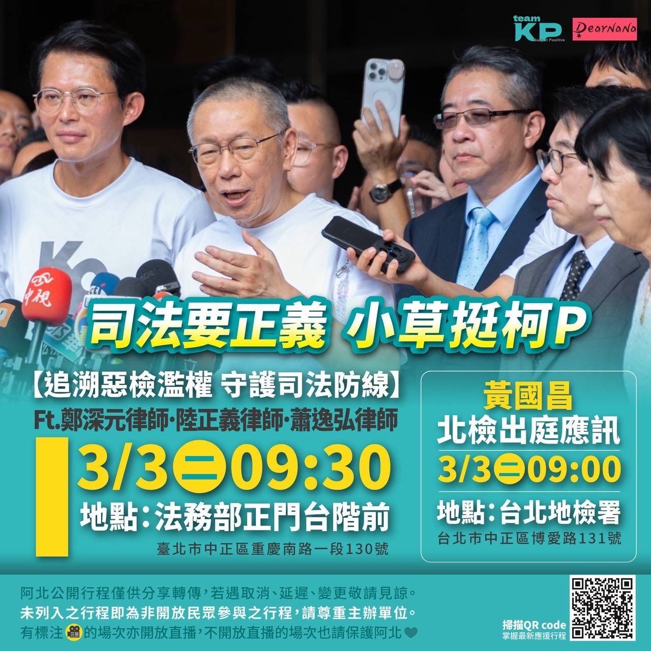 今天民眾党主席超速仔國昌老師09:00要去北檢出庭