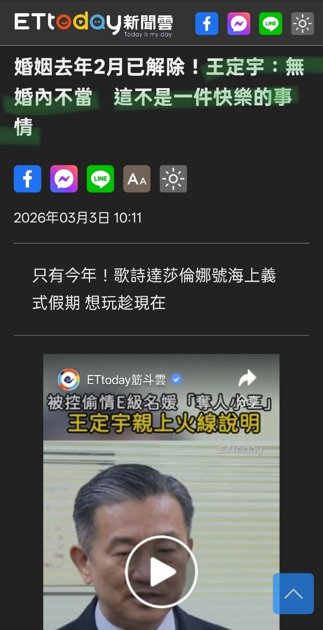 [討論] 王定宇:去年2月婚姻已解除,無婚內不當