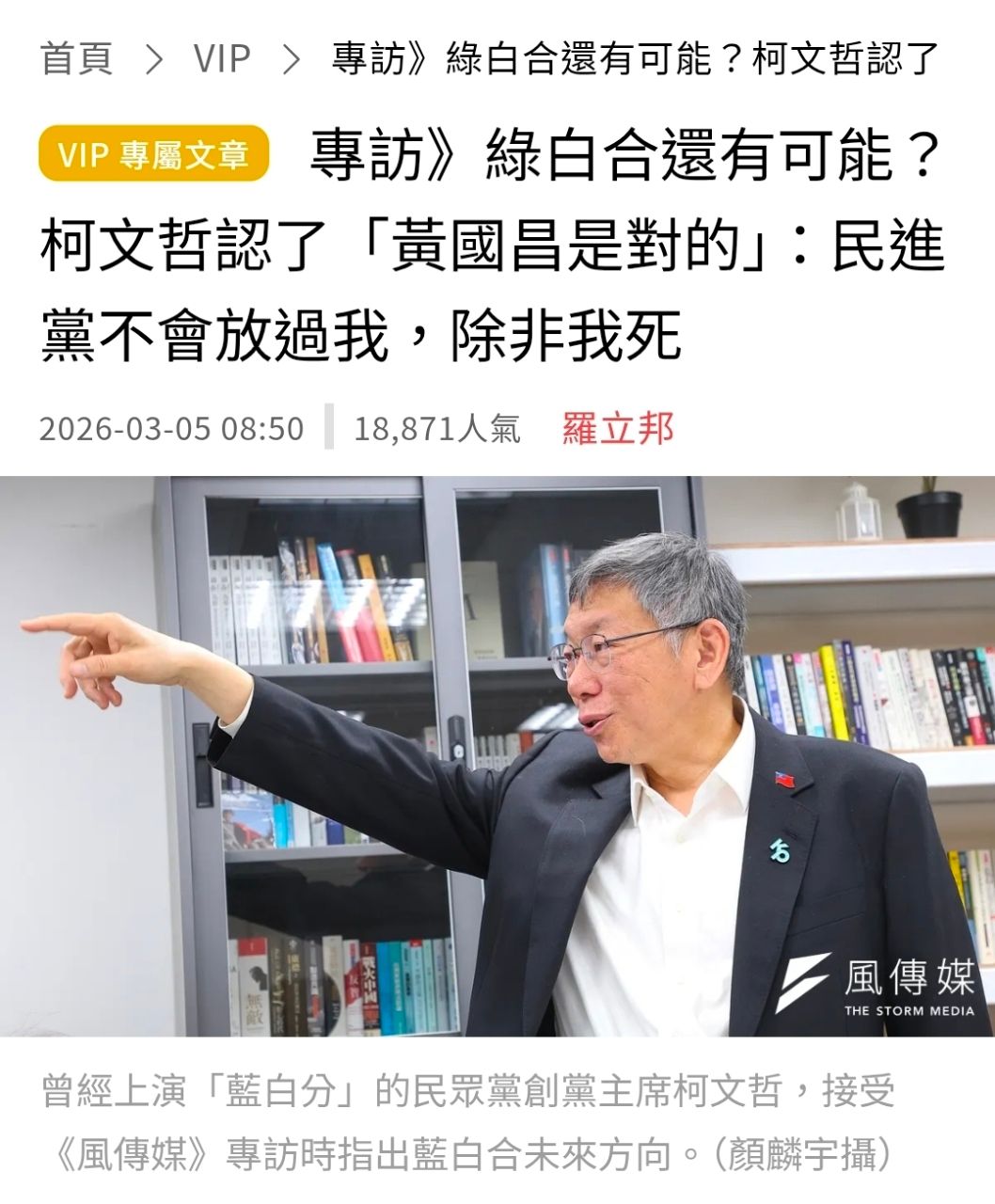 作者 Rrrxddd (有噴 nlnlOeO RR )標題 [討論] 柯文哲:DPP不會放過我 除非我死時間 Thu Mar 5 15:24:30 2026