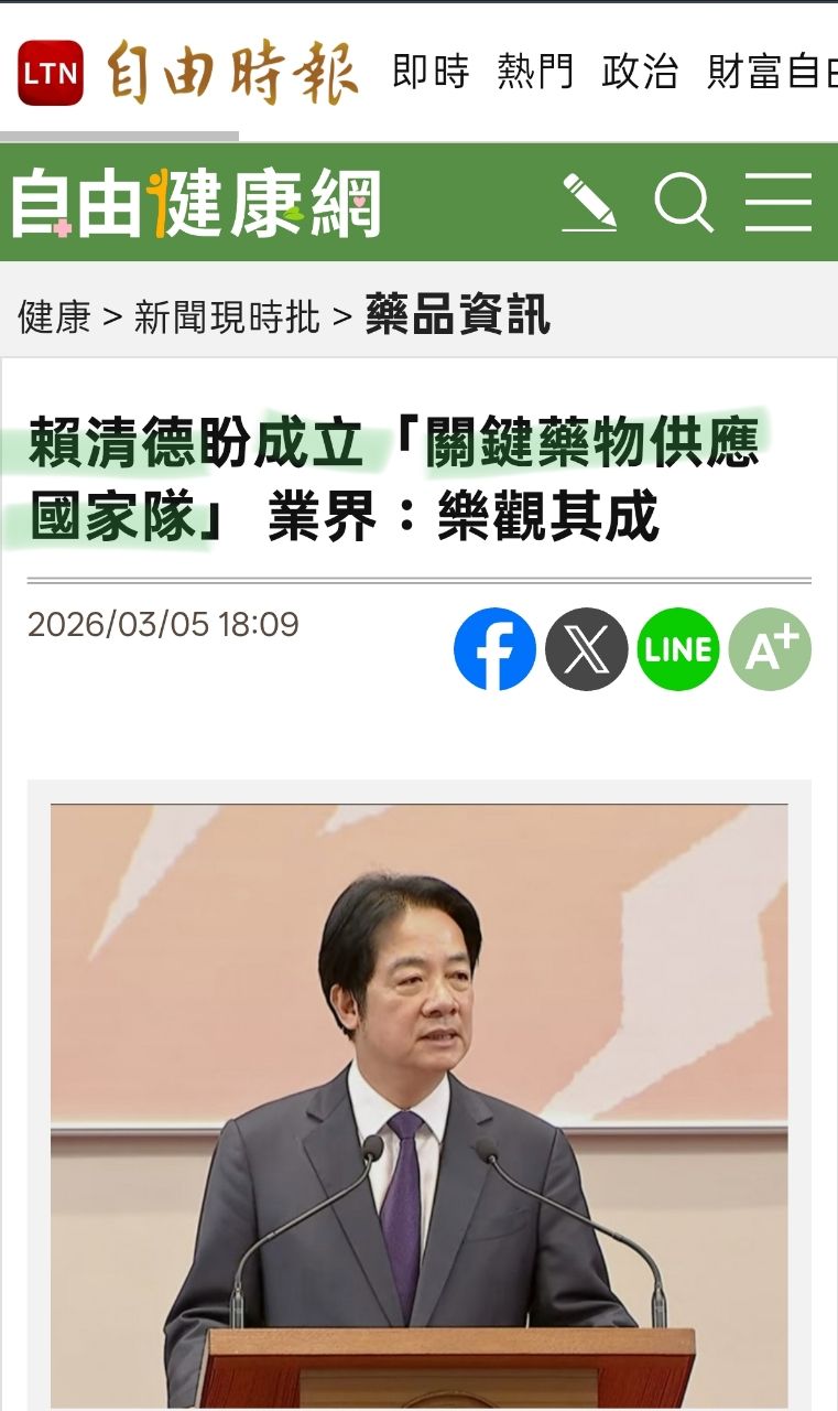 作者 kaminari22tw (拳擊袋鼠能暴漲數十倍的)標題 [討論] 240億新韌性!賴清德:成立藥物國家隊時間 Fri Mar 6 10:06:26 2026