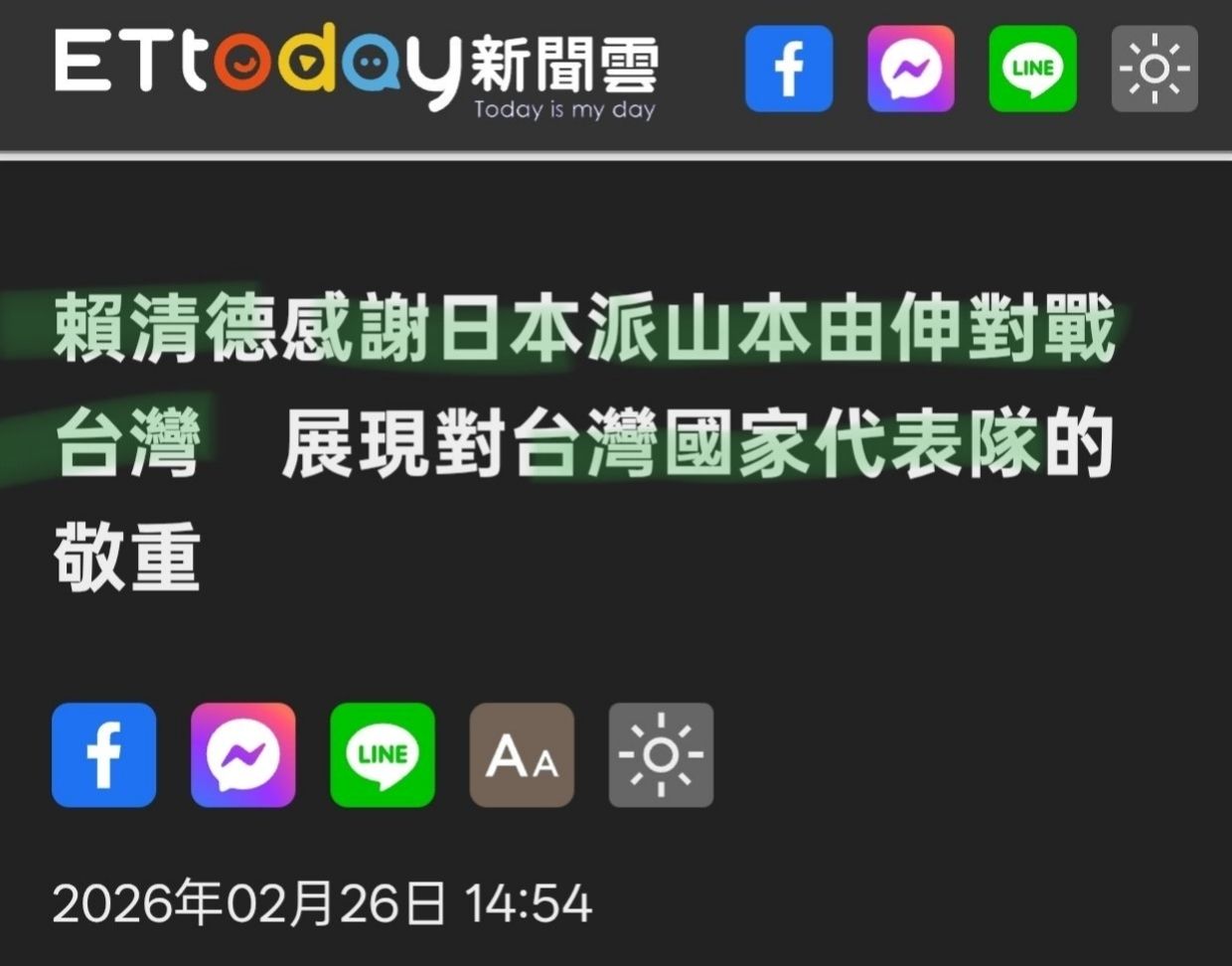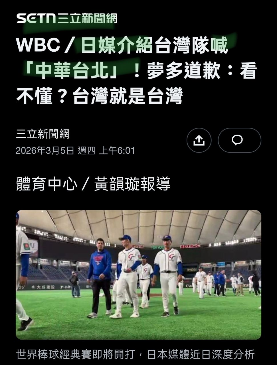 作者 kaminari22tw (拳擊袋鼠能暴漲數十倍的)標題 [新聞] 台日大戰今開打 賴清德:國家代表隊時間 Fri Mar 6 14:59:43 2026