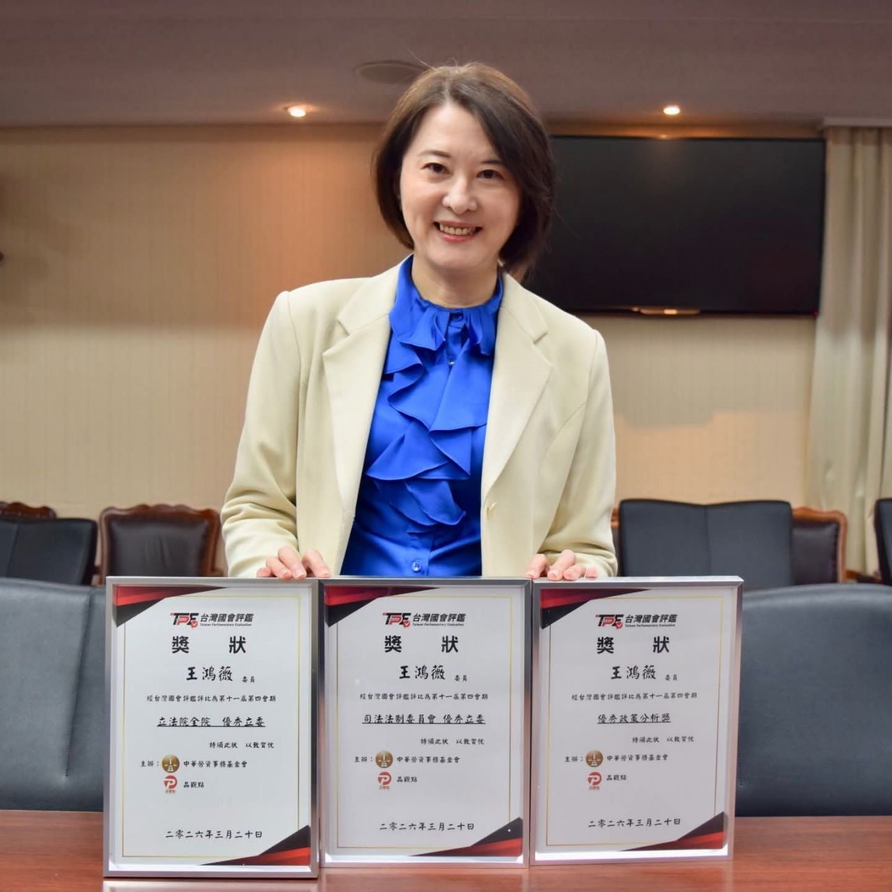 本次榮幸獲得「全院優秀委員」、「委員會優秀委員」與「優秀政策分析獎」三大獎項肯