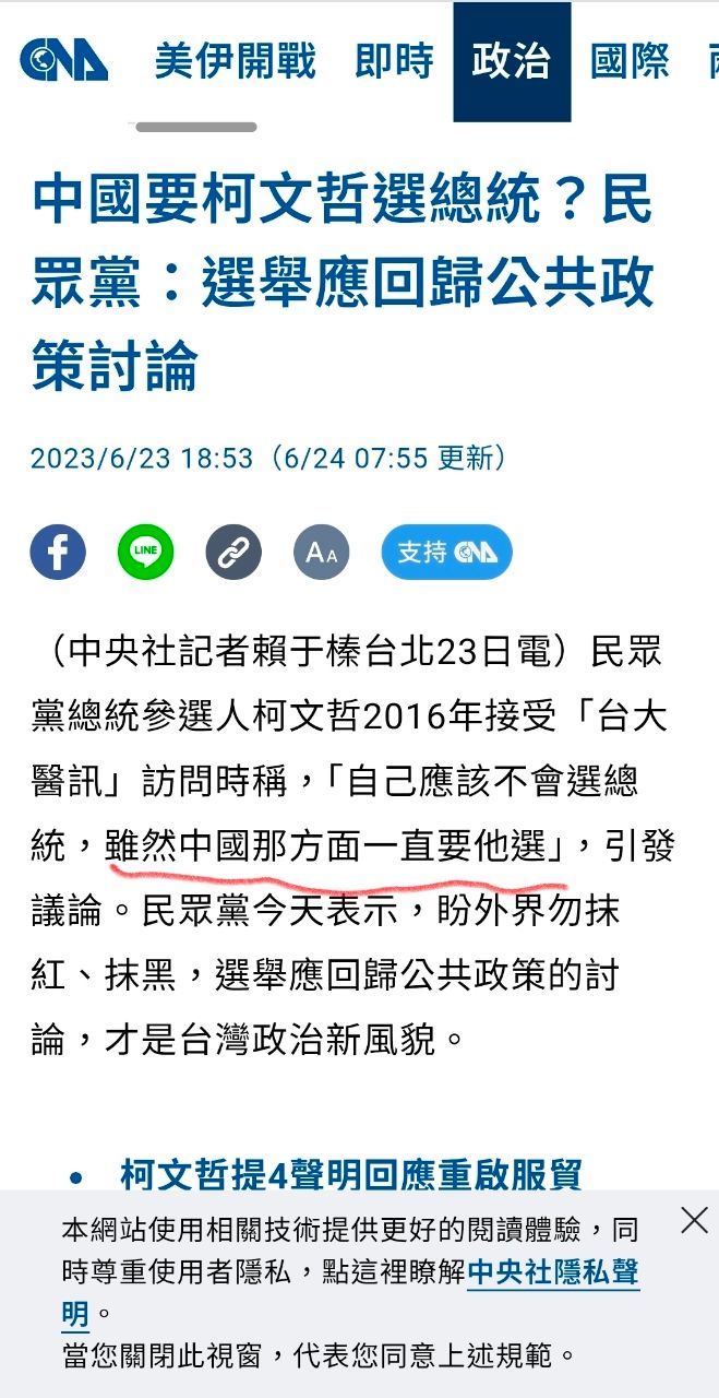 柯就靠中國支持上的啊
