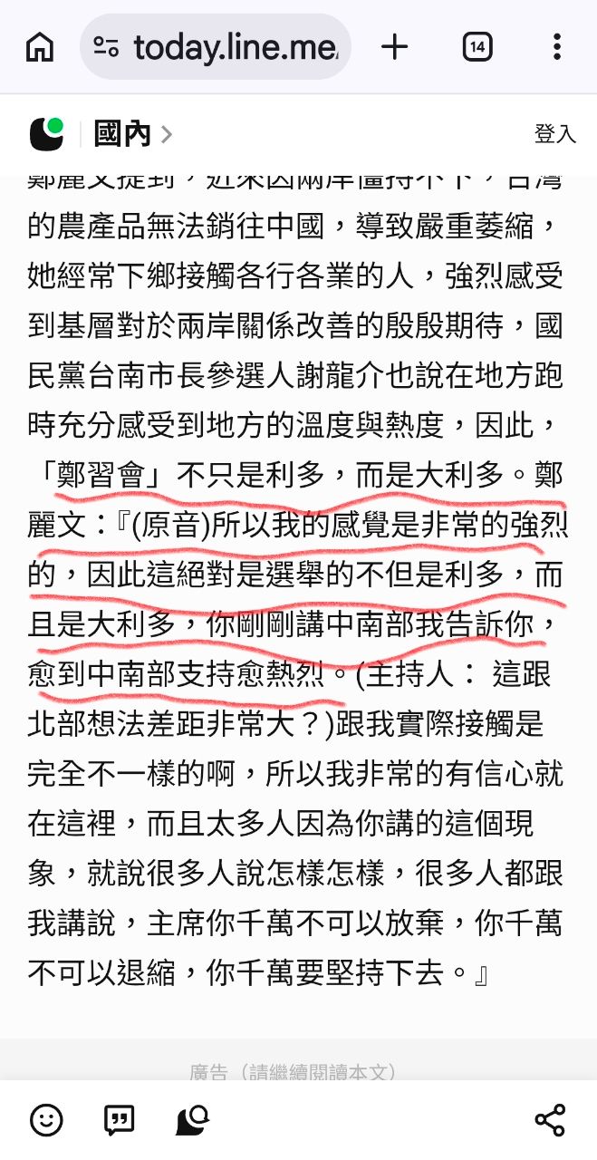 不過國民党別太擔心了,這民調是在鄭習會報導之前做的