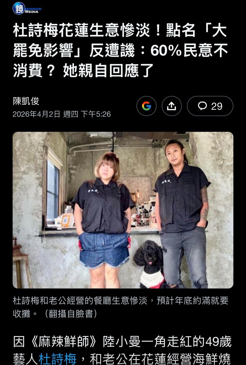 讓我想到最近支持藍白的怎麼生意都說被青鳥抵制而非常淒慘,說好的60%主流民意去哪