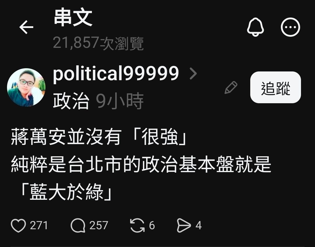 蔣萬安就是吃到台北市基本盤的紅利而已