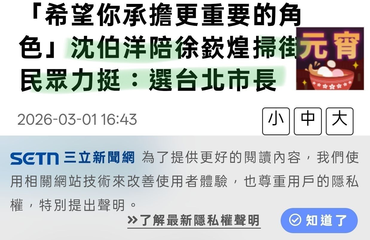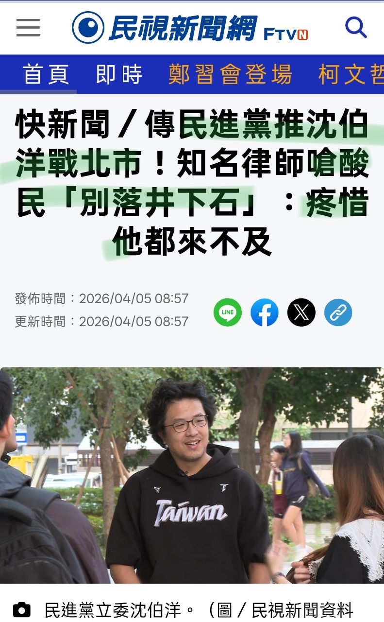 作者 kaminari22tw (拳擊袋鼠能暴漲數十倍的)標題 [新聞] 快新聞/傳民進黨推沈伯洋戰北市!知名時間 Sun Apr 5 19:23:19 2026