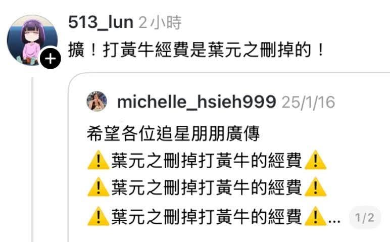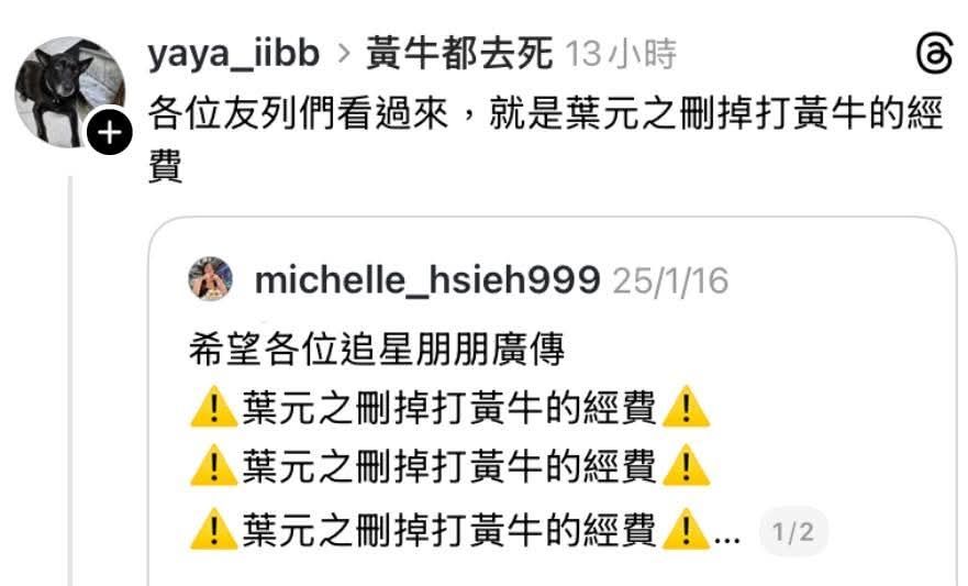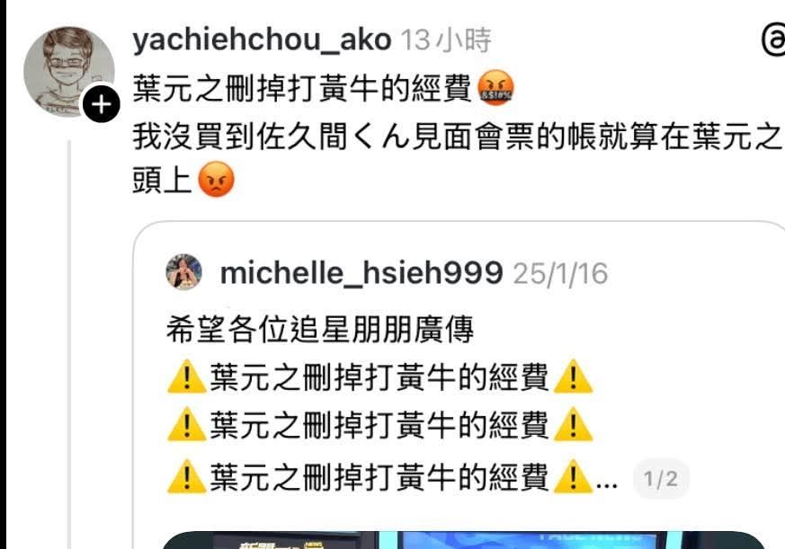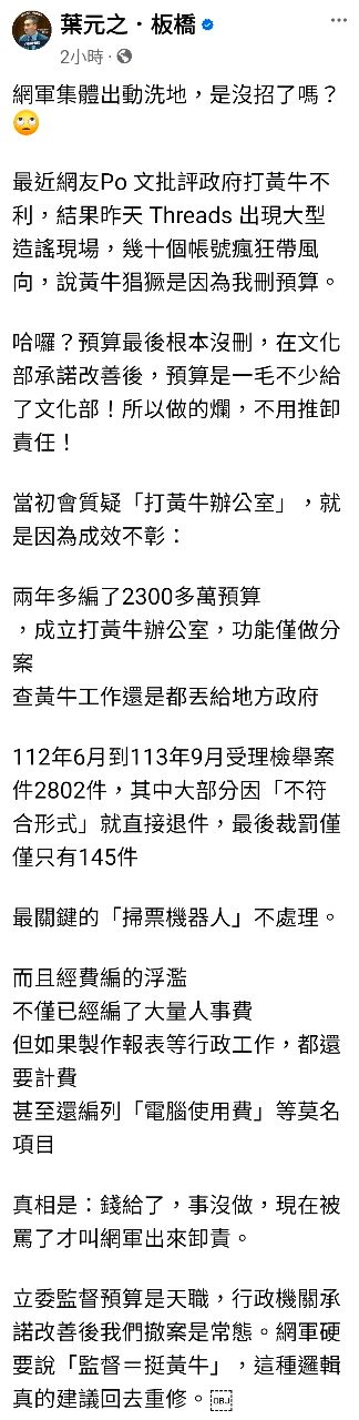 指令:葉元之刪掉打黃牛經費