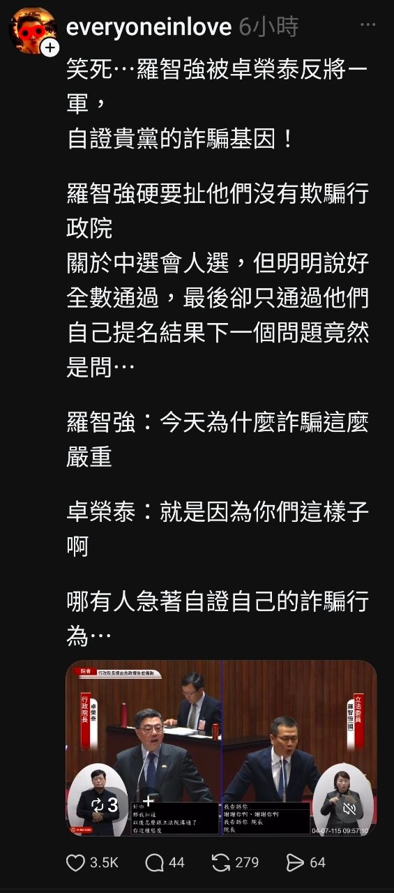 作者 Cosmoswalker (把撞球檯當床睡的男人)標題 Re: [討論] 詐騙為何這麼多 卓榮泰嗆:因為國民黨!時間 Tue Apr 7 16:47:28 2026