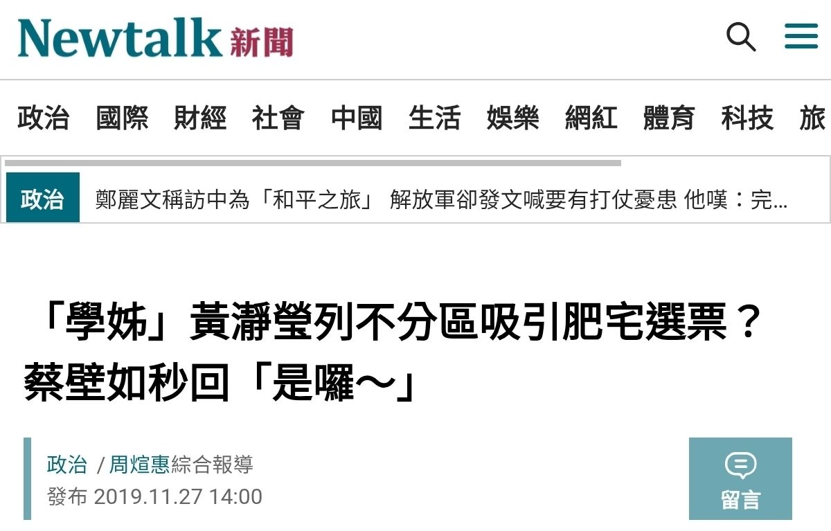 金釵 樣板與地方選舉留言』,寥寥數字,盡是對民眾黨女性最惡劣的重傷。