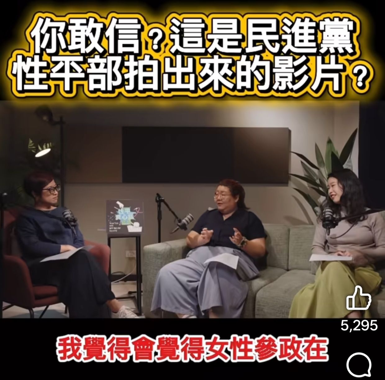 民進黨性平部做的談話節目,說台灣民眾黨的女性從政者都是「禮物」,是用「身體換來