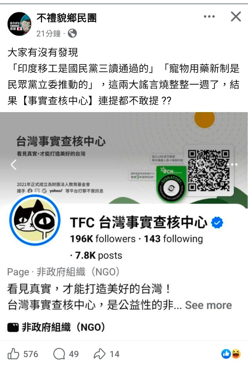 [討論] 不禮貌:事實查核中心提都不敢提