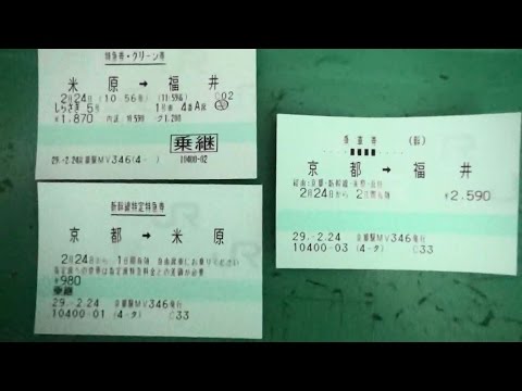 券と乗継割引適用の特急券・グリーン券と乗車券(京都-福井を購入してみた)