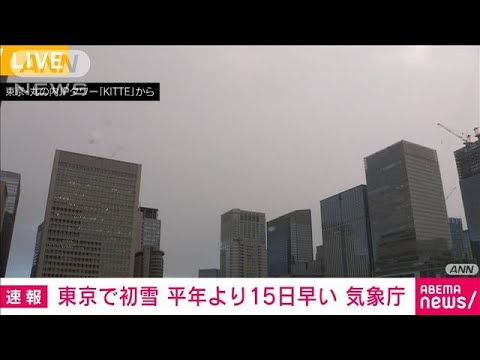 東京管区気象台は19日、東京都心(港区)で午前6時55分ごろにみぞれが降り、初雪を観測したと発表した。