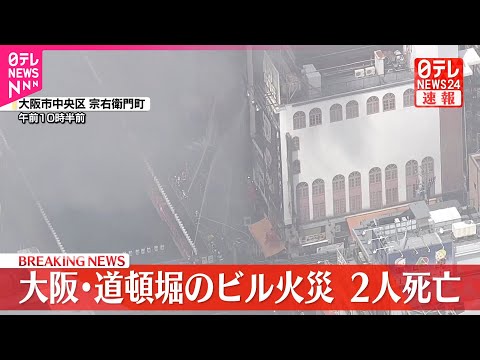 【大阪・ミナミで火事】道頓堀でビル2棟火災 女性2人と男性消防隊員の計3人を救急