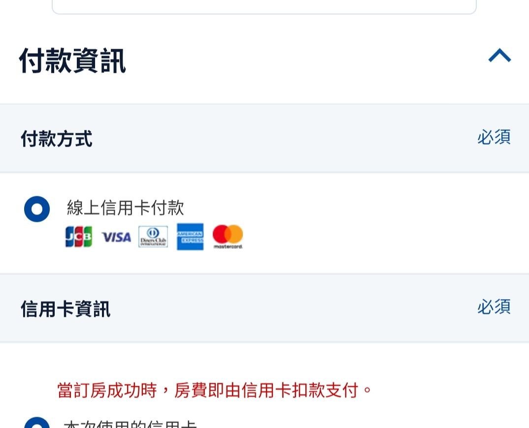 然後付款方式是直接訂房當下就直接刷卡了嗎?因為他沒有別的選項了。