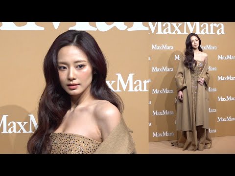 子瑜以華麗的禮服搭配同色系MaxMara外套奢華造型登場,被問到根據品牌主題"timeless