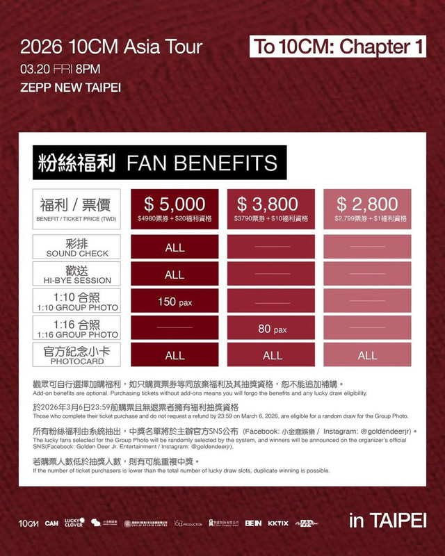 3. 所有粉絲福利由系統抽出,中獎名單將於主辦官方SNS公布。