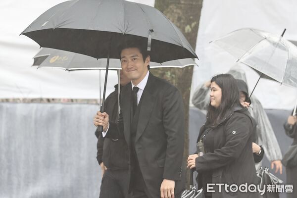 筆挺西裝現身,且他非常低調幾乎壓線到,到場時向四方的親友點頭致意,特地飛來台灣
