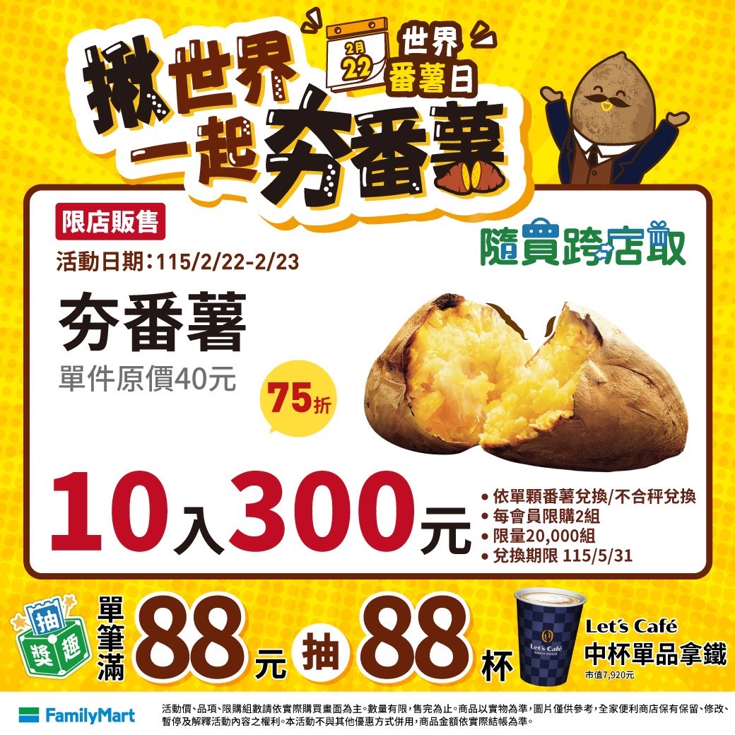 作者 HandyLover (琉球人)標題 [情報] 全家 隨買跨店取 夯番薯 $300/10顆時間 Mon Feb 23 22:26:52 2026