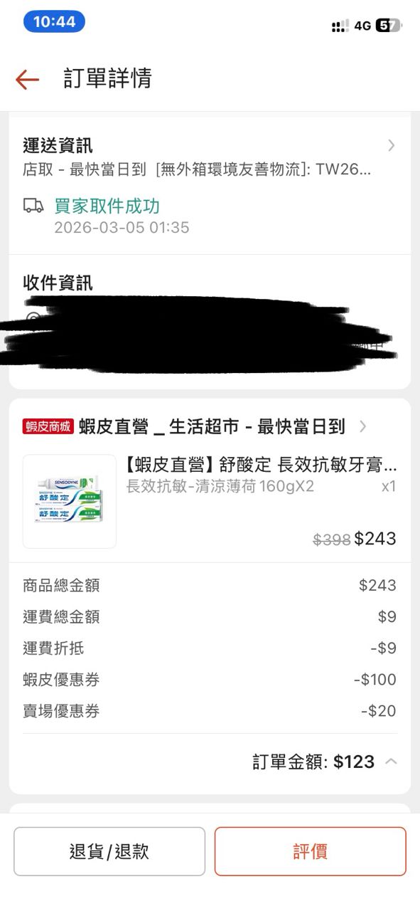 看板 Lifeismoney作者 Dcpp2015 (DC)標題 [情報] 蝦皮舒酸定專業抗敏護齦三條260時間 Fri Mar 6 03:27:30 2026
