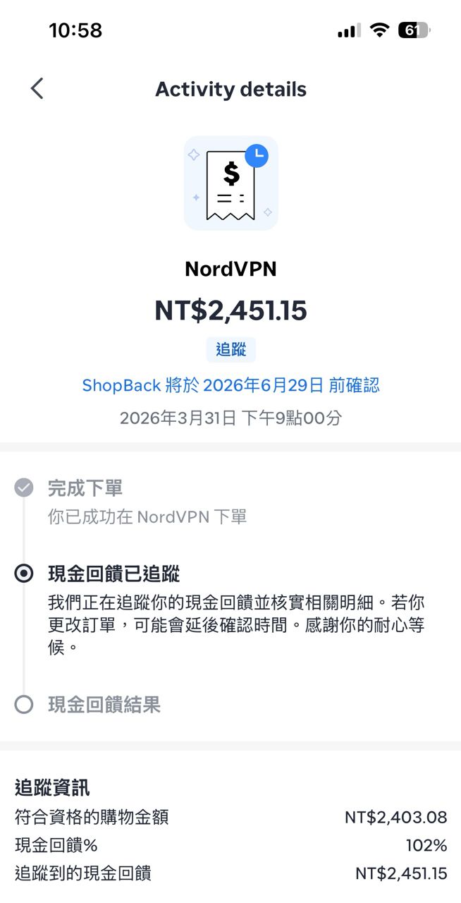 [情報] NordVPN ShopBack 100%回饋 - Lifeismoney 板