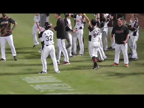 : 再見安打後,企鵝對凱開潑水,被凱開踢了一下XDD,真的