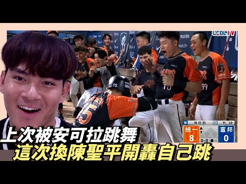 敲出首轟後,陳聖平也首次體驗到統一獅近幾年的傳統「全壘打舞」,他坦言自己沒有想