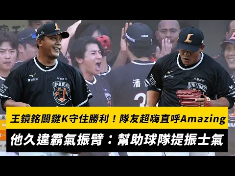 王鏡銘關鍵三振守住統一勝利!隊友超嗨直呼Amazing 他久違霸氣振臂:幫助球隊提振士