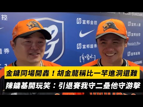 陳鏞基打趣說道,「金龍引退賽我要守二壘,他守游擊!」胡金龍聽到後笑說,「餅哥