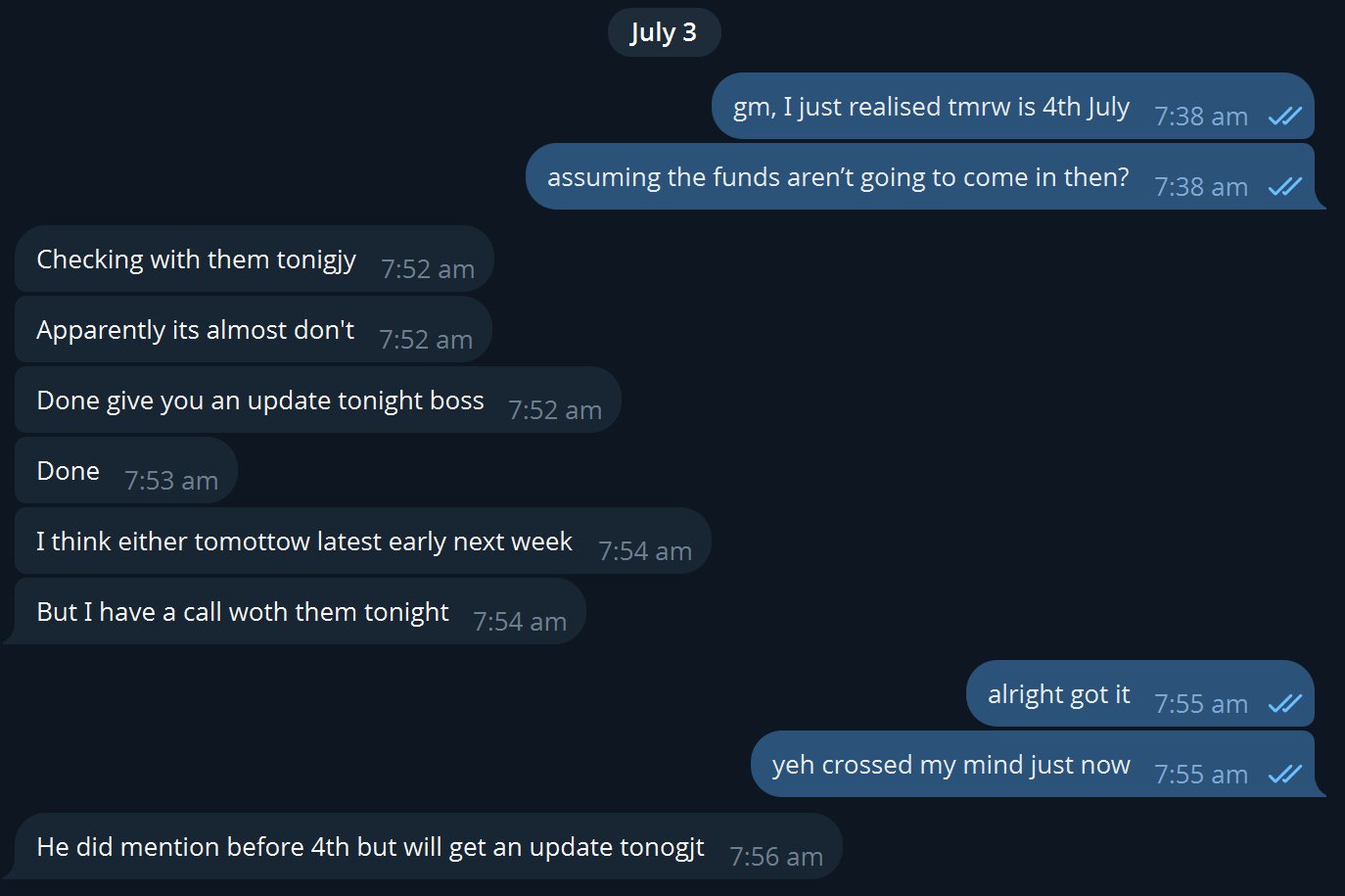Sean:但資金在 7 月 4 日一到,我們就會立刻還款