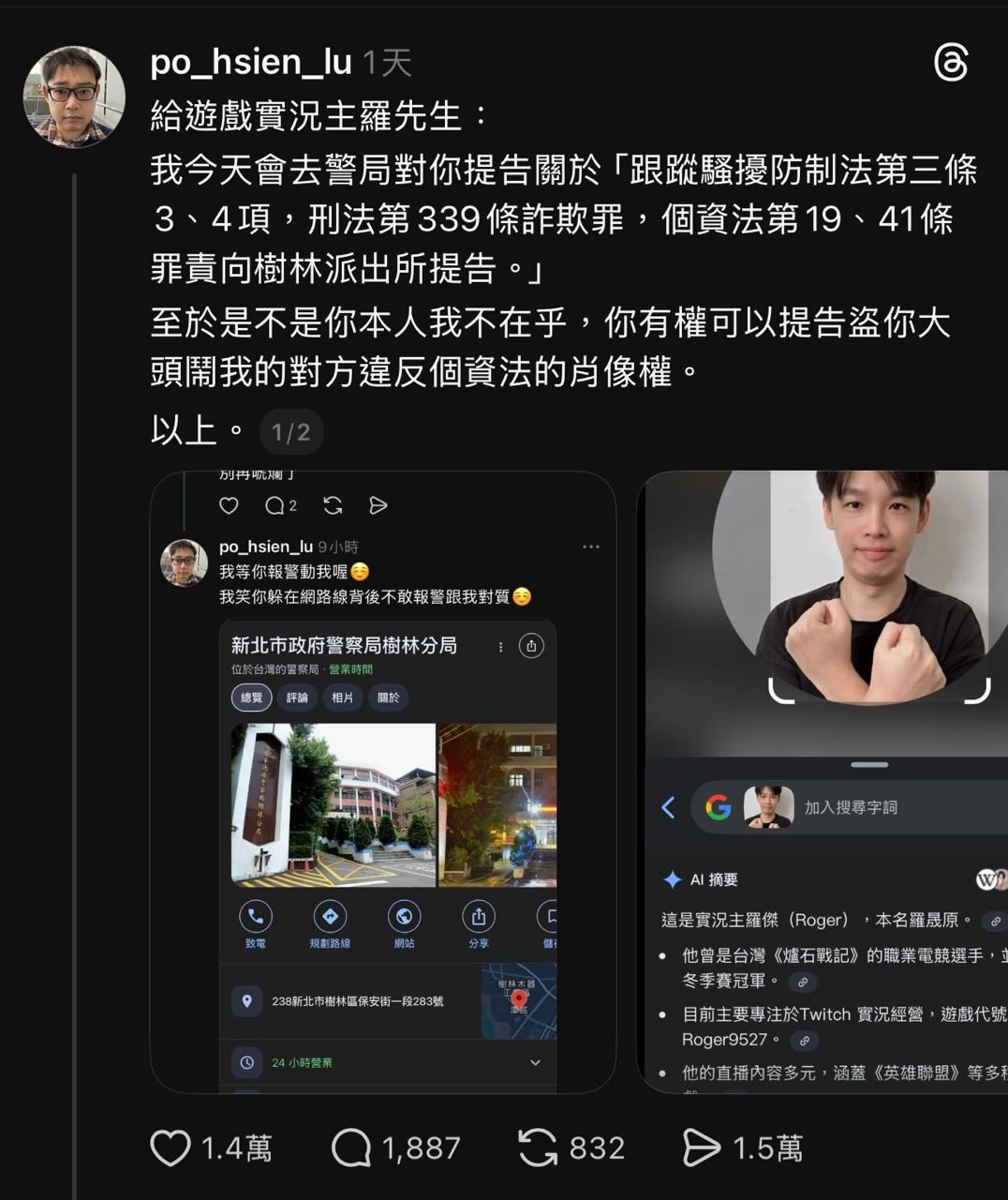 Re: [閒聊] 羅傑粉絲惹怒網友 網友怒提告羅傑 - C_Chat 板
