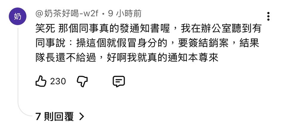 警察局第一句問他是不是有在Thread上罵人