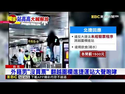 一名外籍男子在台北捷運古亭站,沒有買票、違規翻越欄杆進站,還爬到高處咆哮,大喊