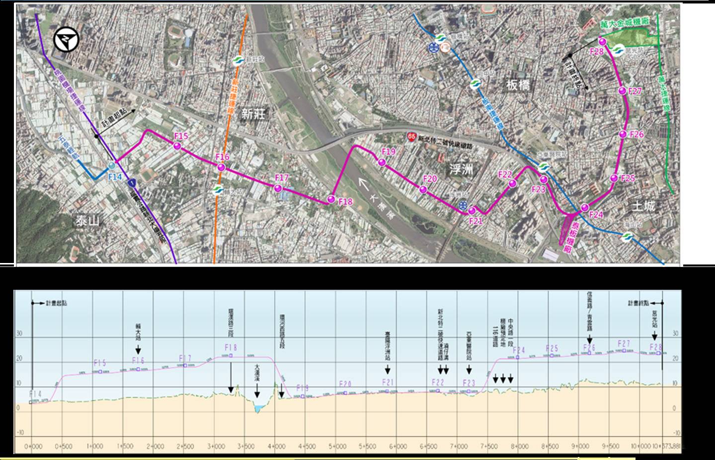 公里,至於F19~F23站(浮洲段)由於路線須從台鐵、高鐵與台65線高架橋下方穿越限制,