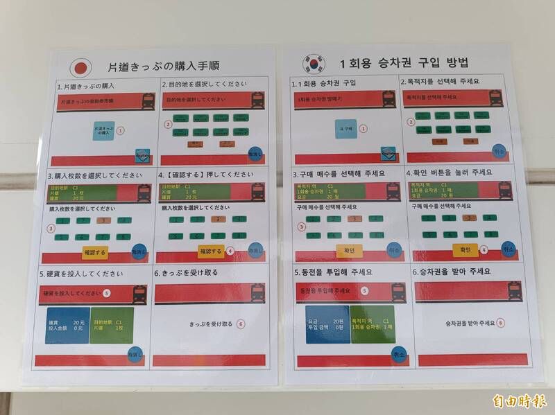 網友發文指出,售票機介面只有中文或英文,沒有日韓文模式,但說明圖示卻把介面示意