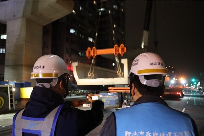 勞現場通宵奮戰的施工人員,土城樹林線成功吊裝,正式進入「上部結構」施工期,代表