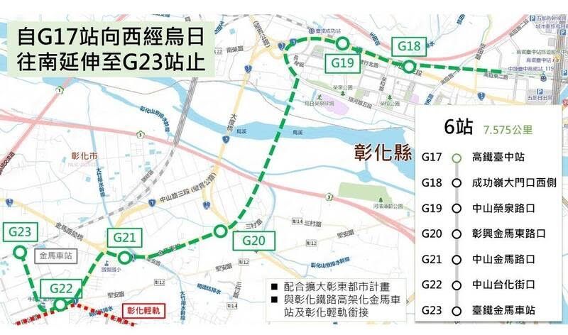 審查,修正版以G22為轉乘起點,全線採取高架化,往彰化市方向主要是通往彰南路,配