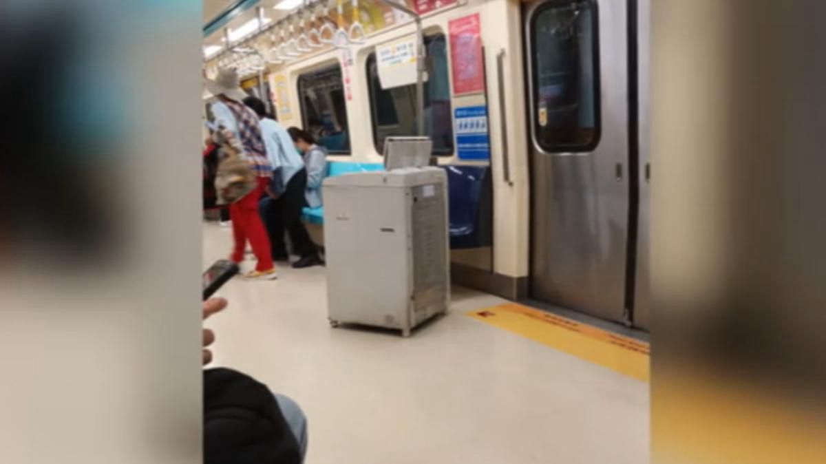 有民眾日前搭乘台北捷運時,驚見另一名旅客竟將整台洗衣機搬進車廂,畫面曝光後引發