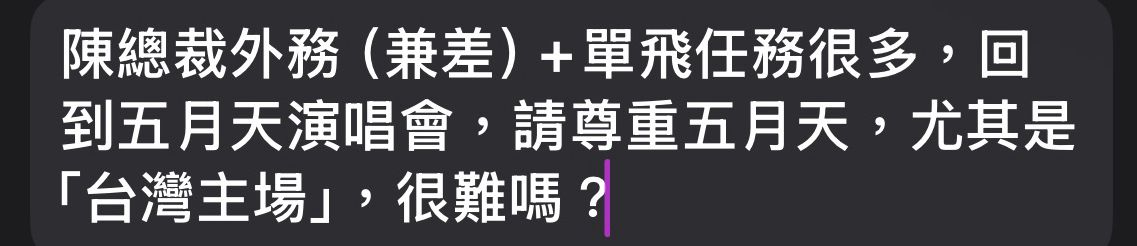 喔還是因為隔壁國家沒報備不能唱,委屈他們只能從五月天自己的作品選XD專程飛來台灣點主唱的外務歌127F 01/02 13:09